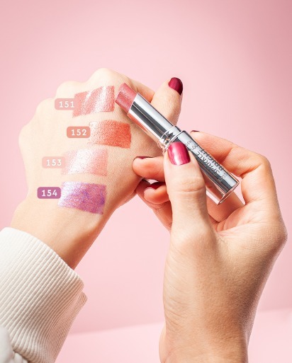 Efektowne, lśniące wykończenie sprawia, że  usta są podkreślone, a niewyczuwalne drobinki dodają im blasku.