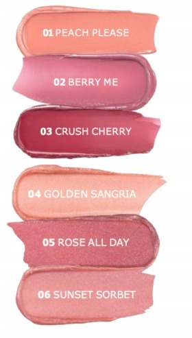 Jej balsamiczna, pielęgnująca formuła z peptydami, olejem z nasion marakui, masłem z moreli i ekstraktem z liści aloesu intensywnie nawilża i wygładza usta, nadając im miękkość i połysk. Odcień 04 Golden Sangria to ciepły, złocisto-brzoskwiniowy ton z drobinami, które pięknie odbijają światło, tworząc efekt pełnych, rozświetlonych ust.