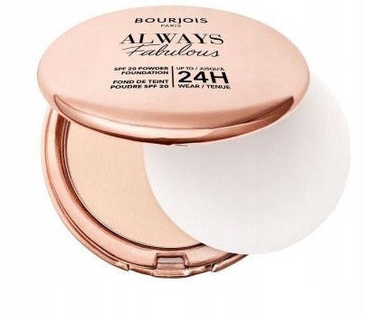 Bourjois Always Fabulous - podkład w kompakcie. Osiągnij naturalny i rozświetlony wygląd, nie rezygnując z doskonałego krycia! Dodatkowo, w eleganckim opakowaniu znajdziesz lusterko i aplikator, co sprawia, że możesz zabrać go ze sobą wszędzie. Matowy podkład w proszku zapewnia idealne krycie i długotrwałą trwałość. Formuła zawiera ochronę przeciwsłoneczną SPF 20, jest wodoodporna oraz odporna na zanieczyszczenia, zapewniając Ci kompleksową pielęgnację i ochronę przez cały dzień.