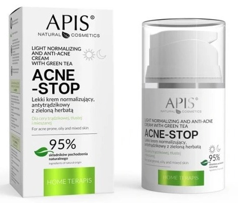 APIS Professional Natural Cosmetics Acne Stop lekki krem normalizujący, antytrądzikowy z zieloną herbatą.