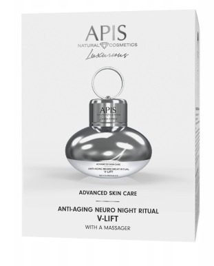Apis Advanced Skin Care V-LIFT Krem Przeciwzmarszczkowy Noc to zestaw do codziennej nocnej pielęgnacji skóry twarzy, składający się z kremu przeciwzmarszczkowego oraz masaźera. Produkt ten został stworzony z myślą o redukcji zmarszczek oraz poprawie wyglądu konturu twarzy.
